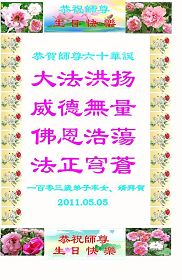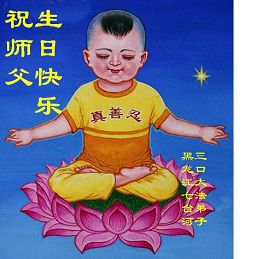 Un pratiquant âgé de Zhaoyuan souhaite respectueusement au Vénérable Maître un Joyeux Anniversaire!