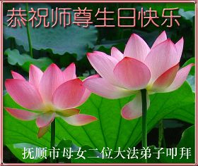 Deux pratiquantes, une mère et sa fille, de Fushun souhaitent respectueusement au Vénérable Maître un Joyeux Anniversaire!