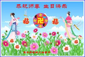 Des pratiquants de Fushun souhaitent respectueusement au Vénérable Maître un Joyeux Anniversaire!