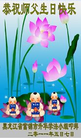 Des pratiquants de Qitaihe souhaitent respectueusement au Vénérable Maître un Joyeux Anniversaire!
