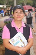Mme Lin Tingying (à droite) discute avec une touriste au sujet du Falun Gong. La dame a accepté de renoncer au PCC et à ses organisations affiliées.
