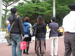 Le Parc de la résidence Shilin CKS est devenu un endroit très populaire pour les résidents et les touristes depuis son ouverture au public en 1996. Beaucoup de touristes chinois ont attentivement lu les panneaux de clarification de la vérité, et un certain nombre de personnes en ont pris des photos. Quelques-uns sont partis à regrets et leurs guides les ont appelés à plusieurs reprises. La zone de démonstration des exercices a été envahie par des personnes qui ont demandé de l’information sur la façon de pratiquer le Falun Gong.