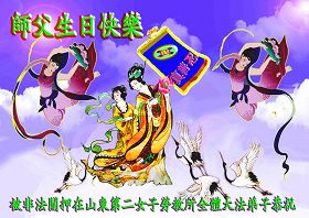 Des pratiquantes du Falun Dafa emprisonnées à la Première prison des femmes de Shandong souhaitent respectueusement un Joyeux Anniversaire au Vénérable Maître et célèbrent la Journée mondiale du Falun Dafa!