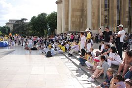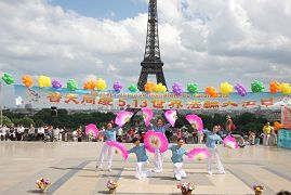 Le 13 mai 2011 est la 12ème Journée mondiale de Falun Dafa et l’anniversaire du fondateur du Falun Gong, Maître Li Hongzhi. Le 8 mai, les pratiquants de Falun Gong en France se sont réunis sur le parvis des droits de l'homme faisant face à la Tour Eiffel. Ils ont fait des démonstrations des exercices de Falun Gong et ont présenté des danses et musiques traditionnelles chinoises, pour célébrer l'anniversaire du Maître, présenter les bienfaits du Falun Dafa et exprimer leur bonheur de trouver le chemin pour retourner à l’origine de la vie.