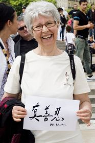 Eva, une résidente locale, était tellement excitée de découvrir le Falun Gong à travers l’activité d’aujourd’hui qu'elle était en larmes. Elle a dit: «Cette célébration est si paisible et belle. C’est simplement extraordinaire! Je me joindrai assurément aux exercices.»