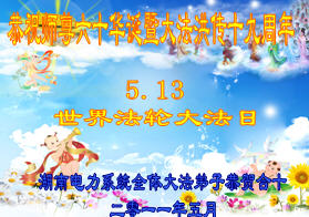 Des pratiquants du Falun Dafa du Système du pouvoir électrique de la province du Hunan souhaitent un Joyeux Anniversaire au Vénérable Maître!