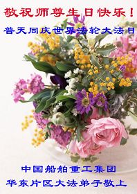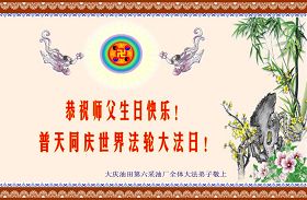 Des pratiquants du Falun Dafa de la Sixième usine de production de pétrole des champs pétroliers de Daqing souhaitent un Joyeux Anniversaire au Vénérable Maître!
