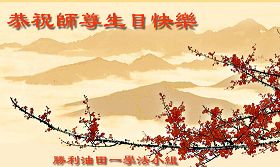 Des pratiquants du Falun Dafa du domaine légale de Shenyang souhaitent un Joyeux Anniversaire au Vénérable Maître!