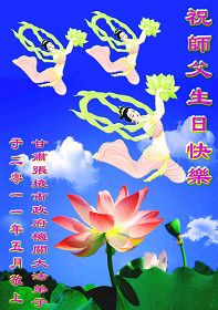 Les pratiquants de Falun Dafa dans les organisations gouvernementales de la ville de Zhangye dans la province du Gansu souhaitent au Vénérable Maître un bon anniversaire!
