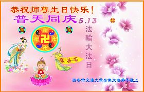 Les pratiquants de Falun Dafa de l'Université de Xian Jiaotong souhaitent au Vénérable Maître un bon anniversaire!