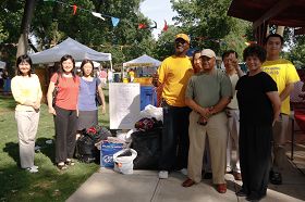Au stand du Falun Dafa, des pratiquants ont mis en place beaucoup de documents de clarification de la vérité. Deux pratiquants ont présenté les exercices sur un côté tandis que d'autres ont présenté le Falun Dafa aux visiteurs qui sont venus au stand.