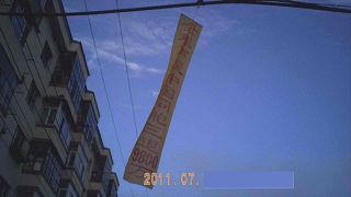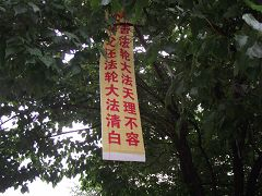 afficher des banderoles pour valider le magnificence de Falun Dafa et