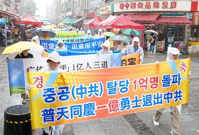 Un rassemblement a été organisé dans la ville de Ansan, en Corée, où de nombreux Chinois résident, le 14 août 2011, pour célébrer les plus de 100 millions de Chinois qui ont renoncé au parti communiste chinois et à ses organisations affiliées,