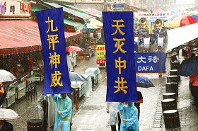 Beaucoup de Chinois sont sortis pour regarder le rassemblement ce jour-là. Un homme dans la cinquantaine a dit: « Bien que je ne sois pas un pratiquant de Falun Gong, je les admire. Ils osent dire la vérité [sur le PCC].» Un autre Chinois l’a défié: «Où serais-tu sans le PCC?» Il a répondu: «Ce sont les gens qui gardent le PCC en vie, et non l'inverse. J'avais une pension de 3000 yuans, quand j'étais en Chine, que j'ai gagné grâce à mes propres mérites, et non pas à cause de ce que le PCC a fait.»
