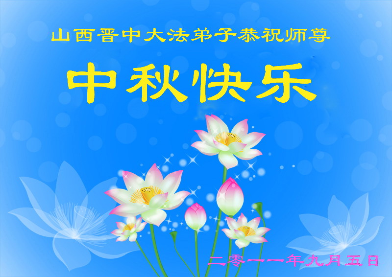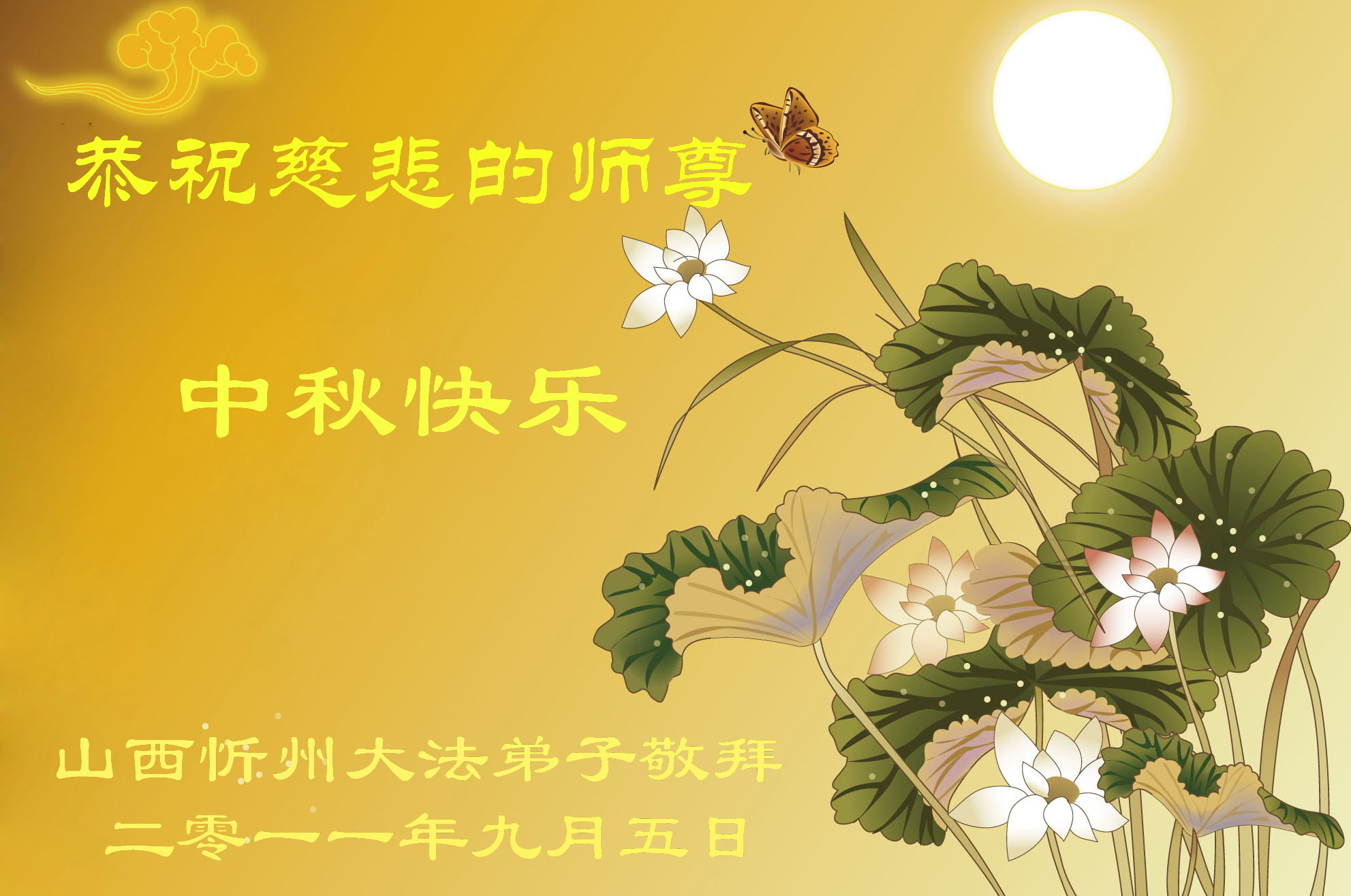 Des pratiquants de la province du Shanxi souhaitent respectueusement au vénérable Maître un Joyeux Festival de la mi-automne!