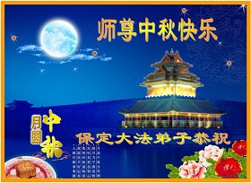 Dans ce compte-rendu, des pratiquants du Falun Dafa du nord de la Chine souhaitent respectueusement au grand vénérable Maître un joyeux Festival de la mi-automne. Nous énumérons quelques-uns de leurs souhaits ici: