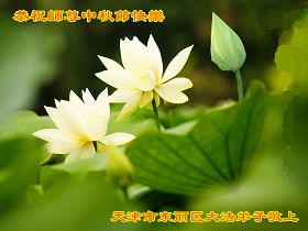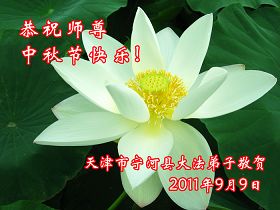 Des pratiquants de Tianjin souhaitent respectueusement au vénérable Maître un Joyeux Festival de la mi-automne!