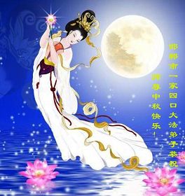 Une famille de quatre pratiquants de Handan, Hebei souhaitent à Maître Li Hongzhi un Joyeux Festival de la mi-automne!