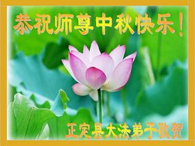 Tous les pratiquants de douze groupes d’étude de la Loi dans un district quelconque de Shijiazhuang, province du Hebei envoient leurs souhaits au grand et compatissant Maître pour un Joyeux Festival de la mi-automne!