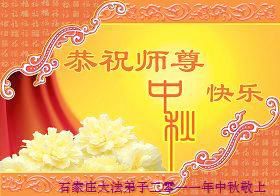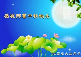 Tous les pratiquants Shijiazhuang envoient des souhaits au grand et compatissant Maître, pour souhaiter au Maître un Joyeux Festival de la mi-automne!