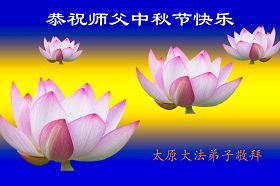 Des pratiquants du district de Dtong Xihuayuan, province du Shanxi souhaitent au grand et compatissant Maître Li Hongzhi un Joyeux Festival de la mi-automne!