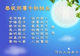 Tous les pratiquants de la ville de Xingtai, province du Hebei souhaitent à Maître Li Hongzhi un Joyeux Festival de la mi-automne!