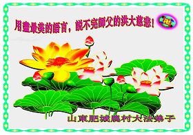 En même temps, au nom des pratiquants qui sont présentement incarcérés dans le centre de lavage de cerveau Yangchu de la ville de Qixia, nous souhaitons respectueusement au vénérable Maître une heureuse fête de la mi-automne! Nous n'avons pas bien cultivé et avons laissé le Maître s'inquiéter à notre sujet. Nous allons essayer de notre mieux de bien faire.