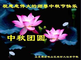 Le jeune pratiquant Xiao Yu de la campagne de la région de Huludao, souhaite respectueusement au vénérable Maître une heureuse fête de la mi-automne!