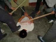 En novembre 2004, les deux gardiens ont emmené M. Huang dans une pièce secrète. L’un d’eux l’a tenu et l’a jeté dans le coin. L’autre lui a donné des coups de pieds, mais M. Huang a résisté et a pu se lever.