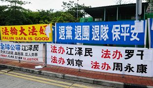Depuis que la persécution du Falun Gong en Chine a commencé en juillet 1999, les pratiquants de Falun Gong de Hong Kong clarifient la vérité sur la persécution aux coins des rues et à de nombreux sites touristiques. Les nombreuses affiches et banderoles du Falun Gong sont considérées par beaucoup comme un indicateur de la liberté d'expression à Hong Kong.