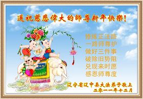 Dans ce rapport, les pratiquants de Falun Dafa du nord-est de la Chine souhaitent respectueusement au Vénérable grand Maître une Bonne et Heureuse Année! Nous énumérons ici certains de leurs souhaits: