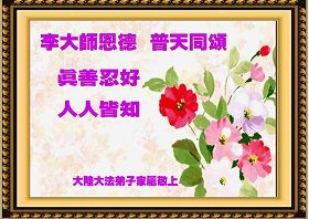 L'épouse d'un pratiquant de Jiamusi, province du Heilongjiang, souhaite respectueusement au vénérable Maître Li une Bonne Année !