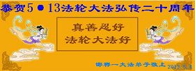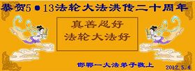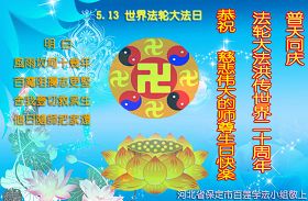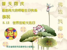 Un groupe d`étude de la Loi de Bailian, ville de Baoding, province du Hebei, souhaite respectueusement au grand Maître compatissant un bon anniversaire et célèbre le 20ème anniversaire de la présentation du Falun Dafa au public !
