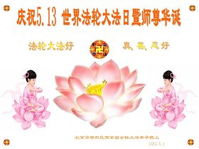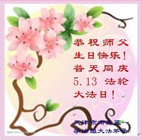 Un groupe d`étude de la Loi du district de Nankai, Tianjin, souhaite respectueusement au Maître un bon anniversaire et célèbre la Journée mondiale du Falun Dafa !