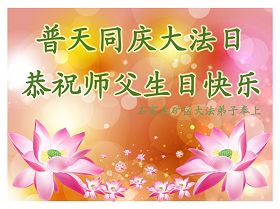 Un groupe d`étude de la Loi de sept pratiquants de la ville de Jincheng, province du Shanxi, souhaite respectueusement au grand Maître compatissant un bon anniversaire et célèbre le 20ème anniversaire de la présentation du Falun Dafa au public !