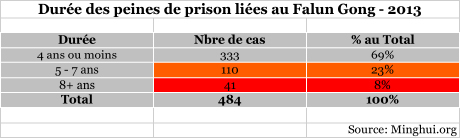 Figure 11. Peine de prison de 484 pratiquants de Falun Gong illégalement condamnés en 2013 (Source : Minghui.org)