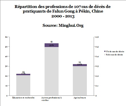 (Minghui.org) Cent sept (107) cas de décès ont été confirmés à Pékin au cours des quinze dernières année de la persécution du Falun Gong en Chine. Le premier cas de décès, Zhang Shuqi (张淑齐) du district de Xicheng de Pékin a eu lieu le 15 janvier 2000. Le dernier décès confirmé était Li Yuejin (李跃进) du district de Shijingshan le 1er octobre 2013.