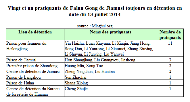 Nombre partiel des pratiquants illégalement condamnés à Jiamusi.