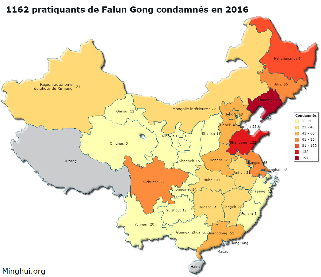 Rapport de Minghui : 258 cas de pratiquants de Falun Gong condamnés pour leur foi nouvellement signalés en septembre et octobre 2016
