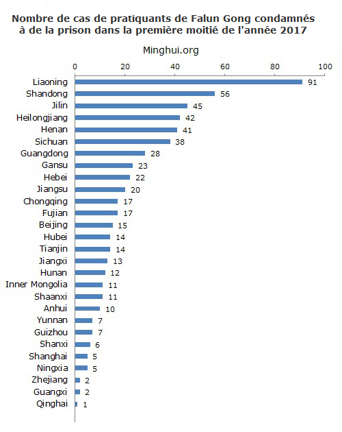 Parmi les 575 cas, 450 pratiquants ont été condamnés en 2017, et 125 en 2016. En raison du blocage de l'information par le PCC, le nombre de pratiquants condamnés et le moment exact de leur condamnation ne peuvent pas toujours être signalés en temps opportun, de plus, toutes les informations ne sont pas facilement disponibles.